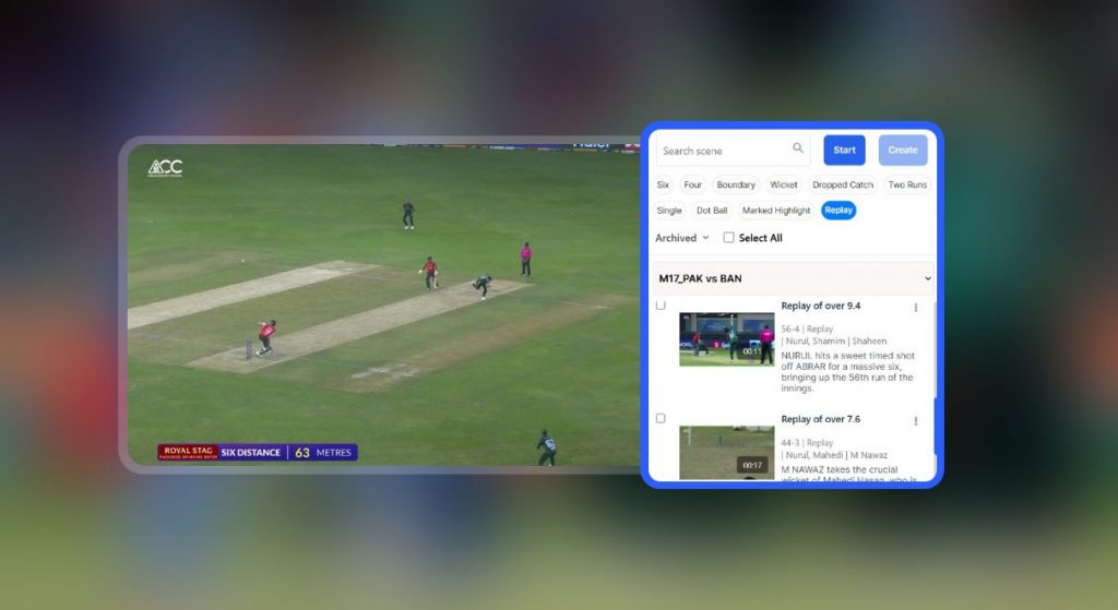 - AI Scene Detection → Automatically detected sixes, wickets, and key milestones.