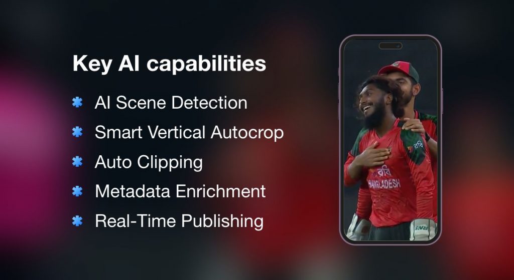 By leveraging Videograph AI, YuppTV turned every boundary, wicket, and milestone into real-time, shareable highlights — boosting fan engagement, cutting workflows, and achieving record speed-to-market across global social platforms.